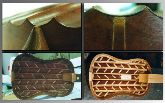 Six courses; vaulted back of 7 ribs in cypress and walnut; sides in